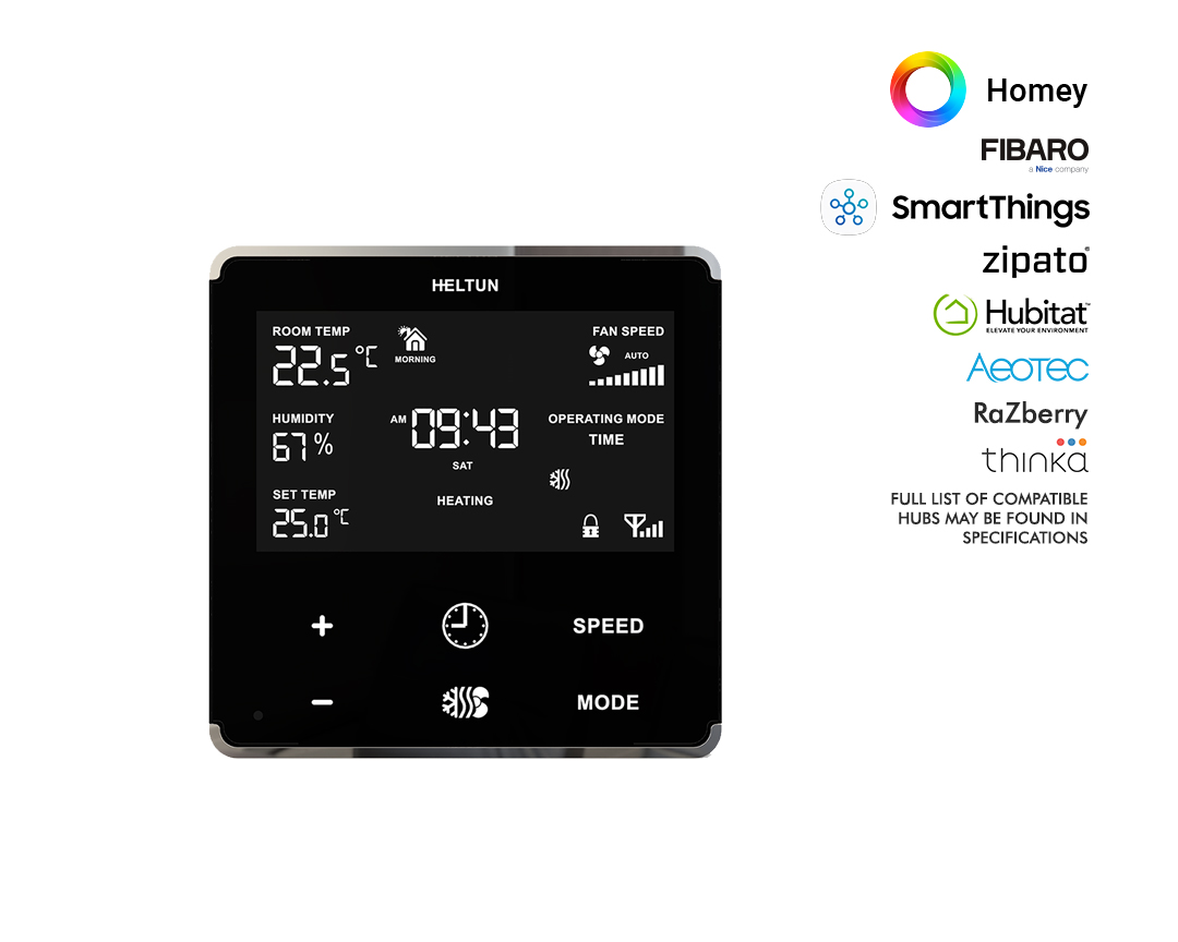 Heltun Fan Coil Thermostat Z-Wave Plus Zwart/Zilver